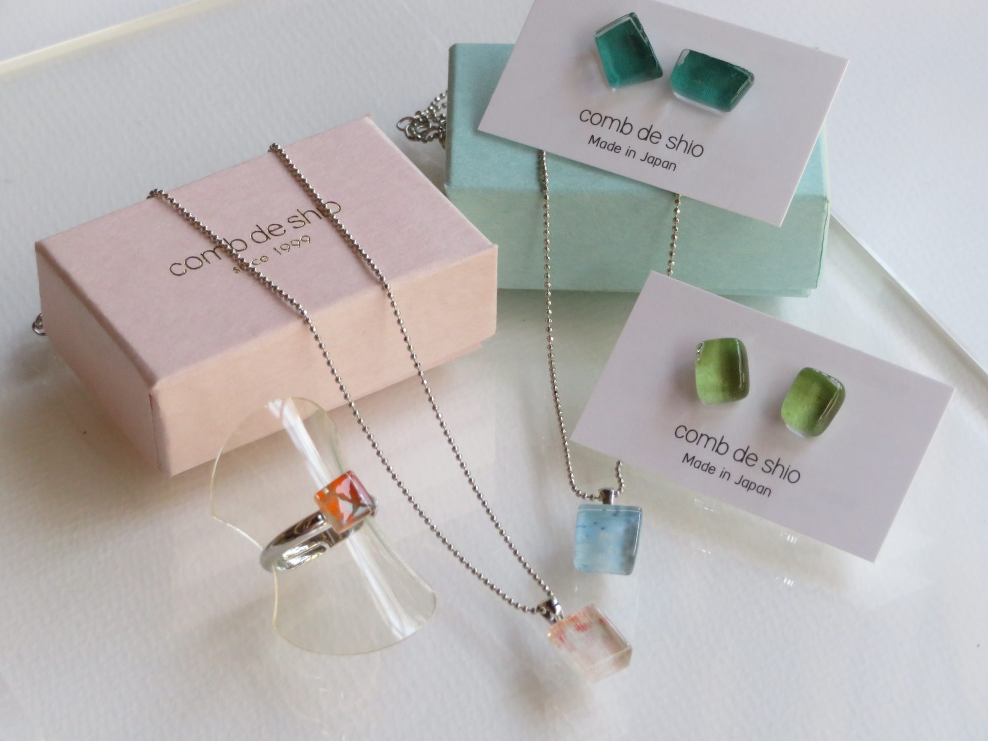 杜多一菜子さん作 手前からリング、ペンダント、ピアス