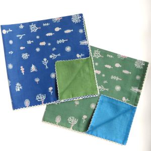スカラップと刺繍が可愛い、2枚仕立てのハンカチです。裏地との色合わせも、さすがのセンスを感じますね!