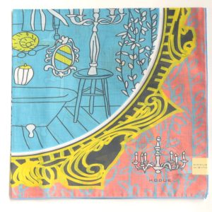 「Room」鏡の中に映るのは、幻想的なファンタジーの世界。四隅に描かれたアイテムには、グリッタープリントが施されています。大判サイズ(58×58㎝)なので、スカーフのようにお使いいただけます。