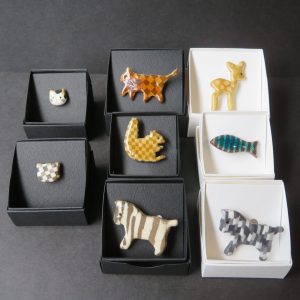かわいいブローチやピンバッジが新しく仲間入りしました。小鹿、魚、猫、りす、来年の干支にちなんだ馬など、ご友人やご自分へのギフトにもいかがですか。