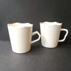 カップの持ち手のデザインが一つ一つ違い、シンプルでモダンな白磁のマグカップは、ゆったりとしたお茶のひとときを過ごすのにピッタリです。ペアで贈るのも素敵です。