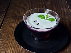 カスカラ(コーヒー果実の果皮を乾燥させたもの)で作ったカスカラシロップを使っています。