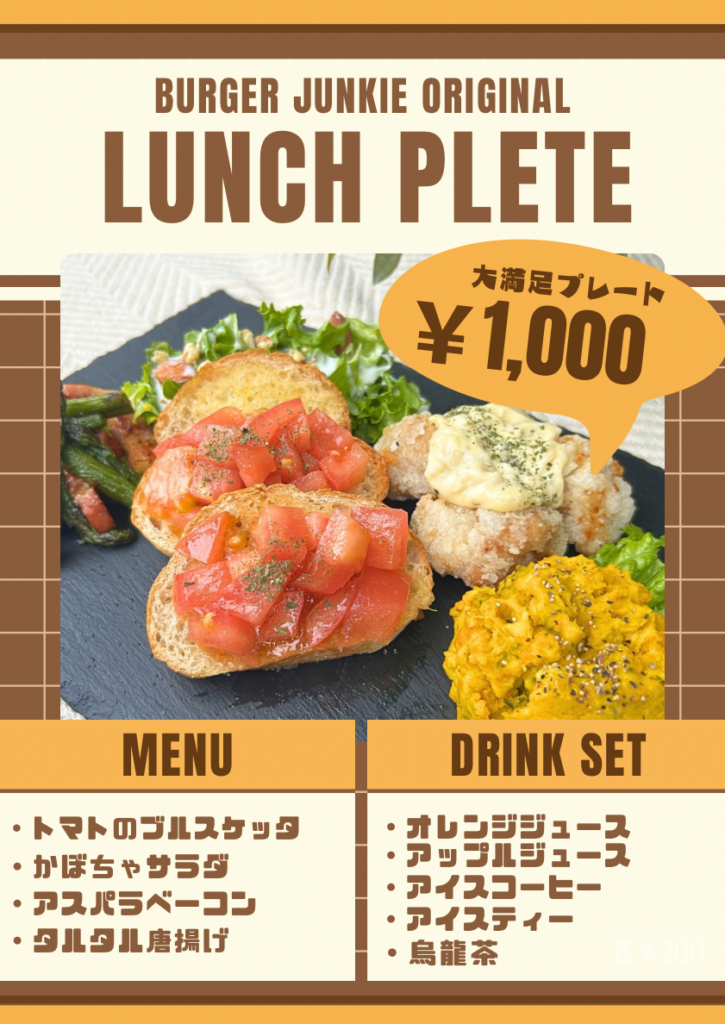 ランチプレート(ドリンクがセット)1,000円