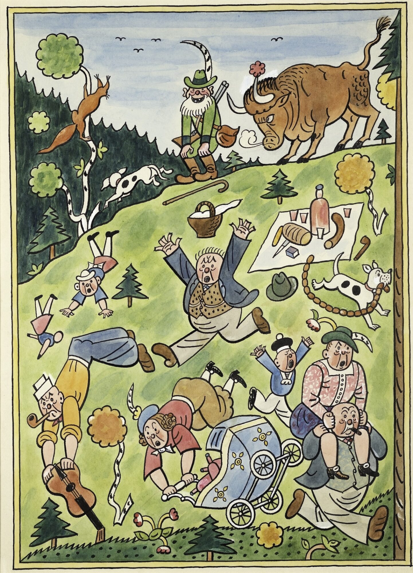本展では日本でも馴染み深い『黒ねこミケシュのぼうけん』や『きつねものがたり』などの児童本や、代表作『兵士シュヴェイクの冒険』の挿絵原画をはじめ、故郷の風景やクリスマスの情景などを描いた絵画、そしてラダの原点とも言える諷刺画の仕事について、ご遺族のコレクションを中心とする約200 点を超える作品資料を通してご紹介します。