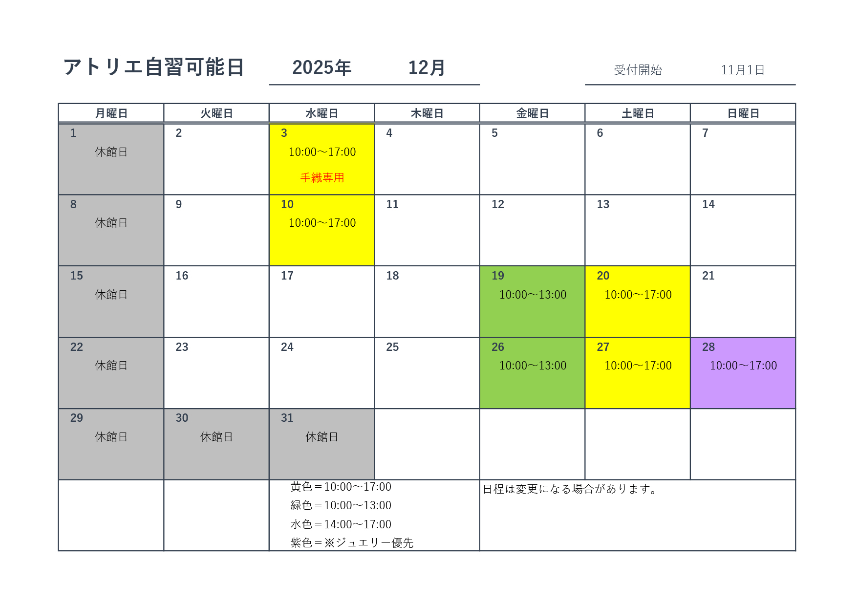 工芸実技講座および伊丹ジュエリースタジオ受講生と伊丹ジュエリーカレッジ修了生は、アトリエで自習を行うことができます。