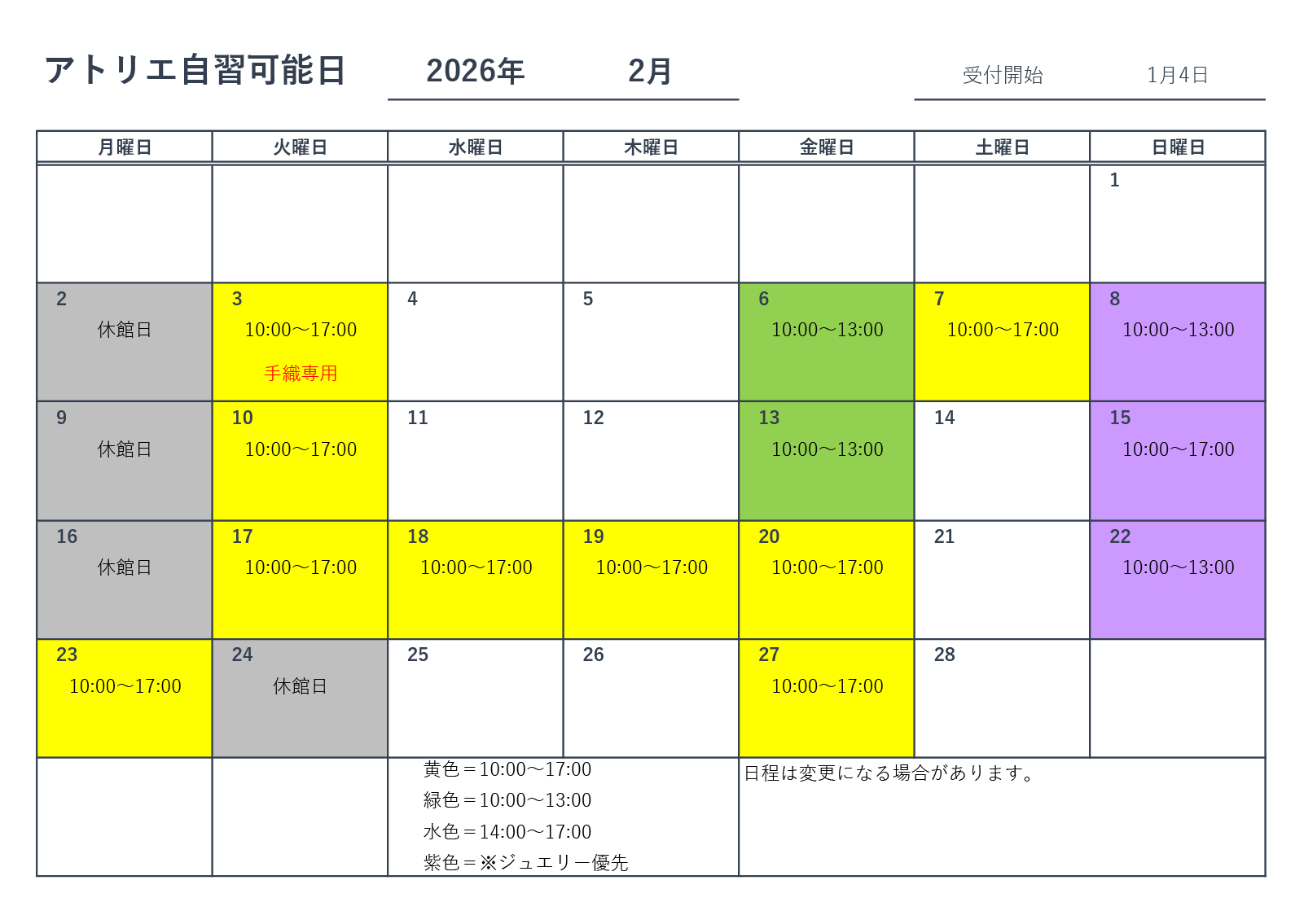 工芸実技講座および伊丹ジュエリースタジオ受講生と伊丹ジュエリーカレッジ修了生は、アトリエで自習を行うことができます。